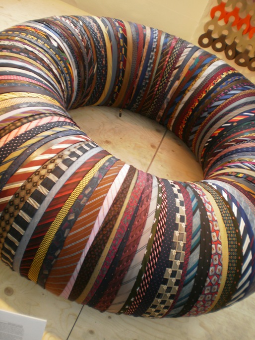 O Studio Piu sempre com novidades e muitas exposições interessantes no Museu Temporário de Design, este ano a iluminação conjugada com o sensorial deu um bom resultado final. Praticamente todos os espaços uniram a iluminação com o sensorial, o jogo de cores e cenários. Nesta foto um pufe e uma cadeira revestidos com gravatas diversas…