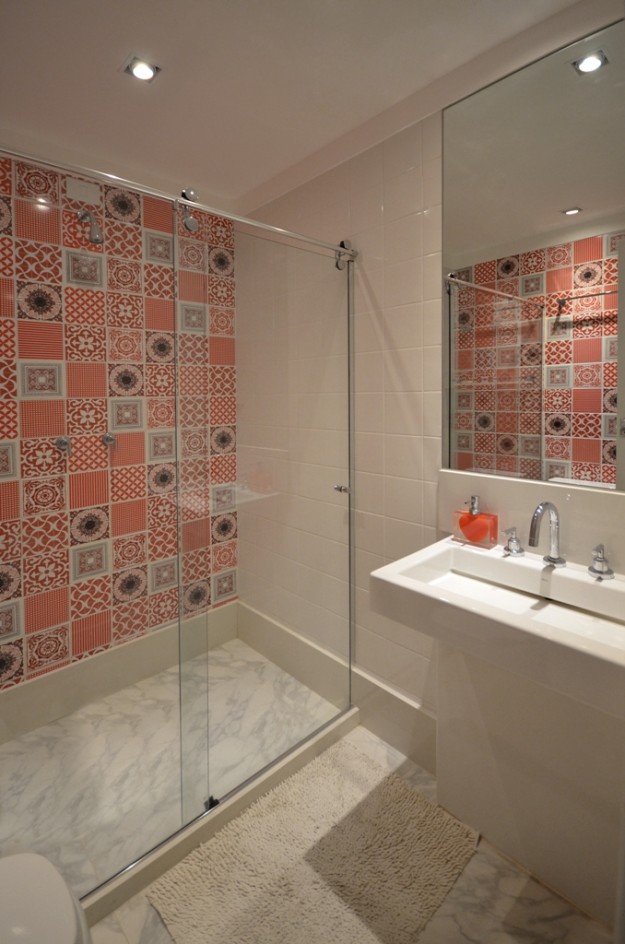 O pequeno banheiro de empregadas ganhou um pouco mais de espaço, diminuindo as dependências de serviço. A proposta era ter mais um banheiro na casa que pudesse ser alternado o uso com a empregada que frequenta o imóvel todos os dias nos horários comerciais e aos sobrinhos e visitantes do casal. A ideia de um ambiente de bom…