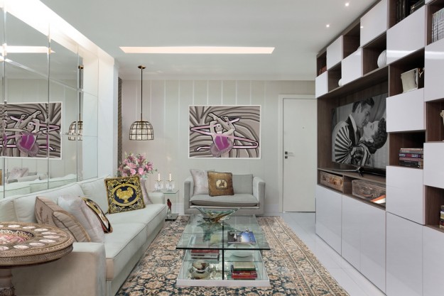 Este projeto uniu dois pequenos imoveis de 28 m2 em um único de 56 m2. Para concentrar todas as atividades de sala de estar, TV, jantar e cozinha o arquiteto priorizou um ambiente único maior, um estar gourmet sem divisões entre sala e cozinha. Ideal para pequenos apartamentos com toque moderno para pequenas famílias que adoram receber…