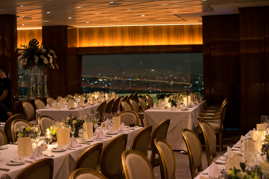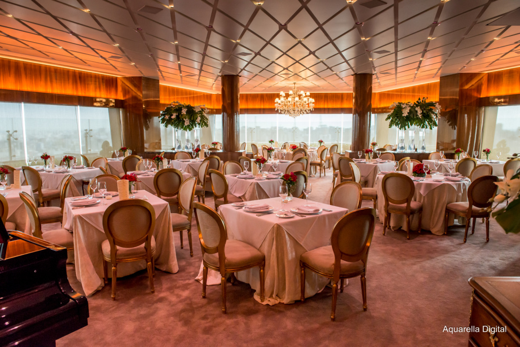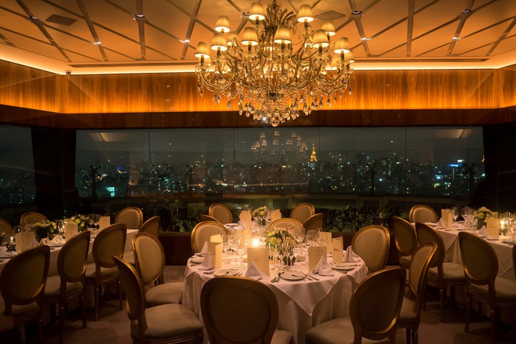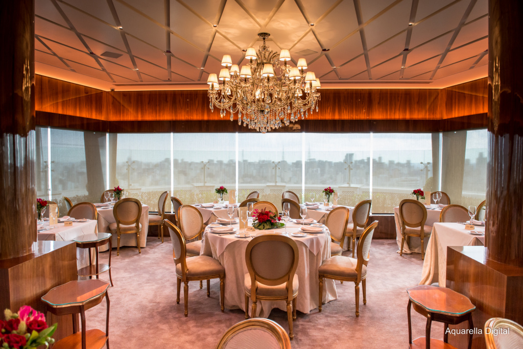 As cadeiras clássicas modelo medalhão foram mantidas, assim como as colunas do centro da sala, elementos marcantes do décor do restaurante. O uso de um desenho geométrico no teto, mesclado com uma iluminação indireta, ajudaram a realçar ainda mais a vista da cidade de São Paulo, um dos grandes atrativos do local.