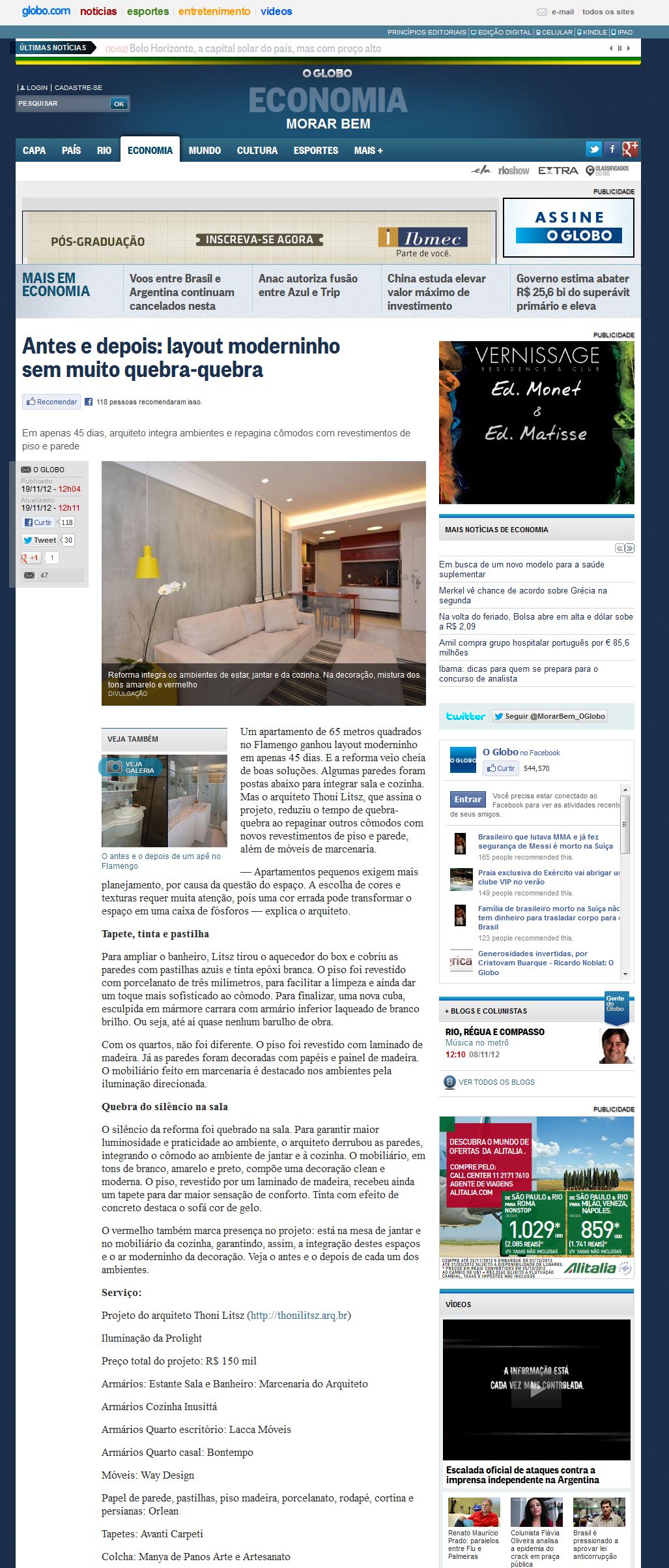 — Apartamentos pequenos exigem mais planejamento, por causa da questão do espaço. A escolha de cores e texturas requer muita atenção, pois uma cor errada pode transformar o espaço em uma caixa de fósforos — explica o arquiteto.