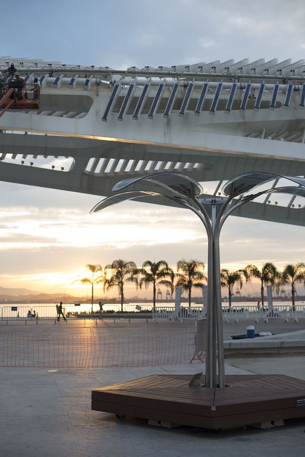O design em formato de árvore ainda deixa as ilhas de descanso com uma aparência mais agradável e sensibiliza o público quanto à importância da sustentabilidade e da responsabilidade ambiental.