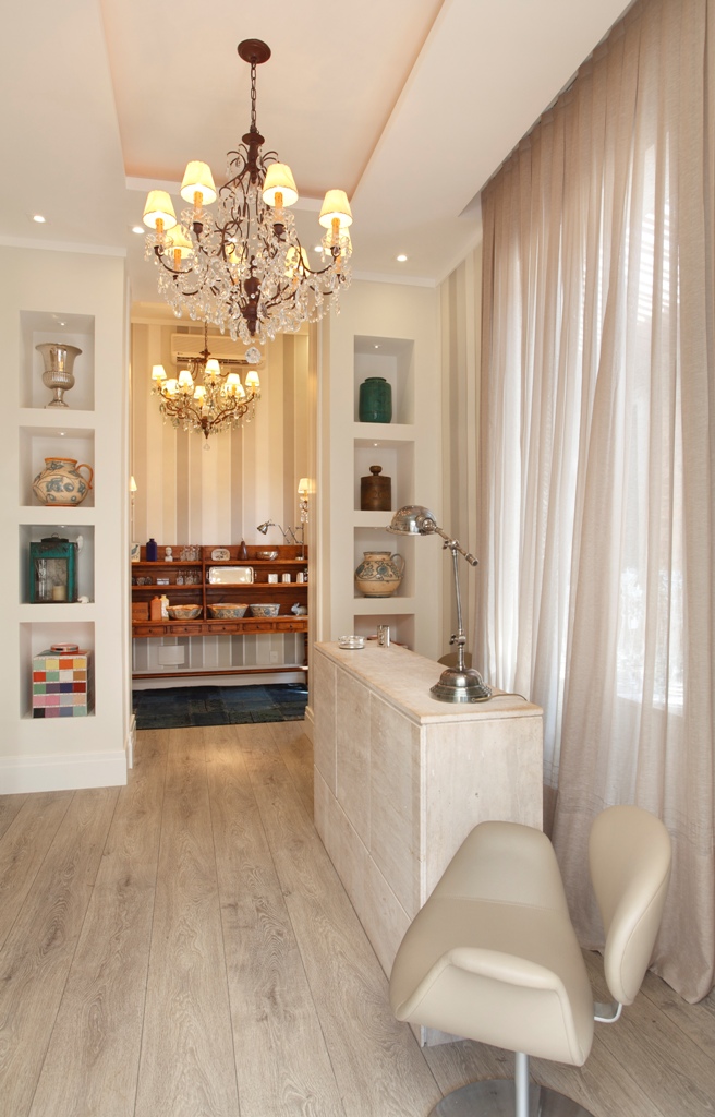 As cores neutras e a arquitetura valorizada pela iluminação sobressaem o produto exposto, deixando a cor apenas nos objetos expostos.