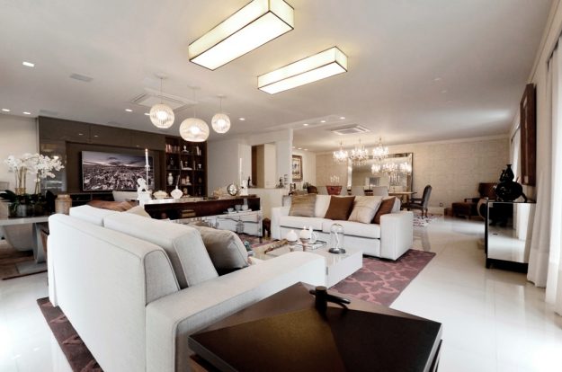 Para um jovem casal o arquiteto Thoni Litsz primou pelo design, cores e a iluminação direcionada ao que realmente merecia destaque. Neste Living multiuso as atividades de estar, jantar e também TV receberam tons neutros que ampliam o espaço e cores apenas em pontos estratégicos. O contraste do cinza com os tons de laranja e…