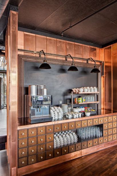 Essa área do café ganha um clima totalmente diferente com a presença do cobre. (Reprodução/Pinterest)
