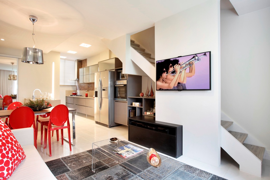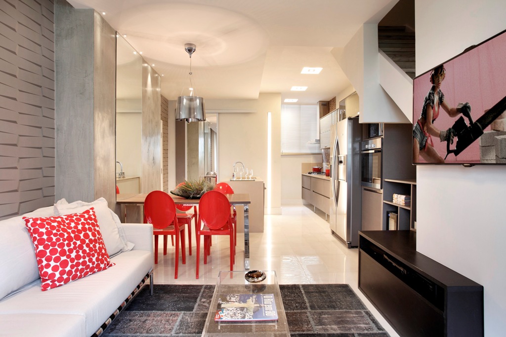 Este apartamento de 66 mts2 duplex localizado em Copacabana foi projetado para uma moça de 32 anos solteira que adora receber os amigos em casa, porém uma de suas necessidades era elaborar os pratos e dar atenção ao mesmo tempo aos seus convidados.