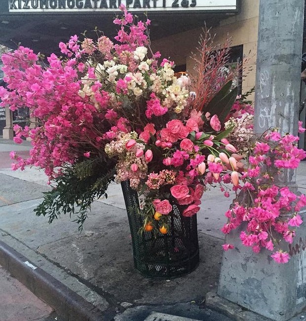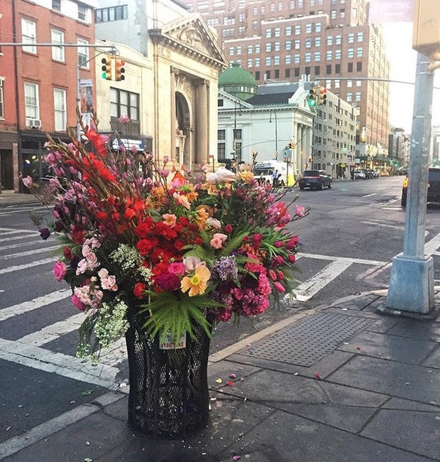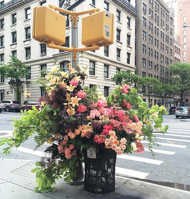 Imagine se você estivesse andando pela sua cidade e, ao invés das lixeiras estarem transbordando lixo, elas estivessem cheias de flores? Esse é o projeto do designer floral Lewis Miller, que espalha buquês enormes por Nova York, nos Estados Unidos.