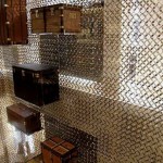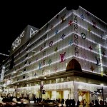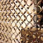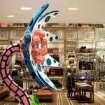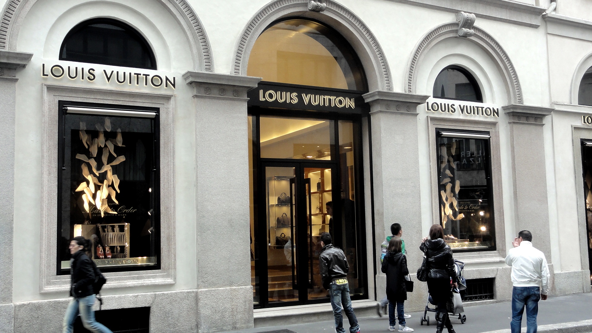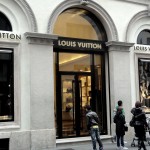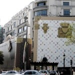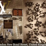 Na loja de Milão localizada na Rua Montenapoleoni e na de Paris localizada no Chaps Elysées uma das Avenidas mais movimentadas e elegantes de Paris, argolas douradas com agregados representando a flor do monograma da marca revestiram uma parede da loja.