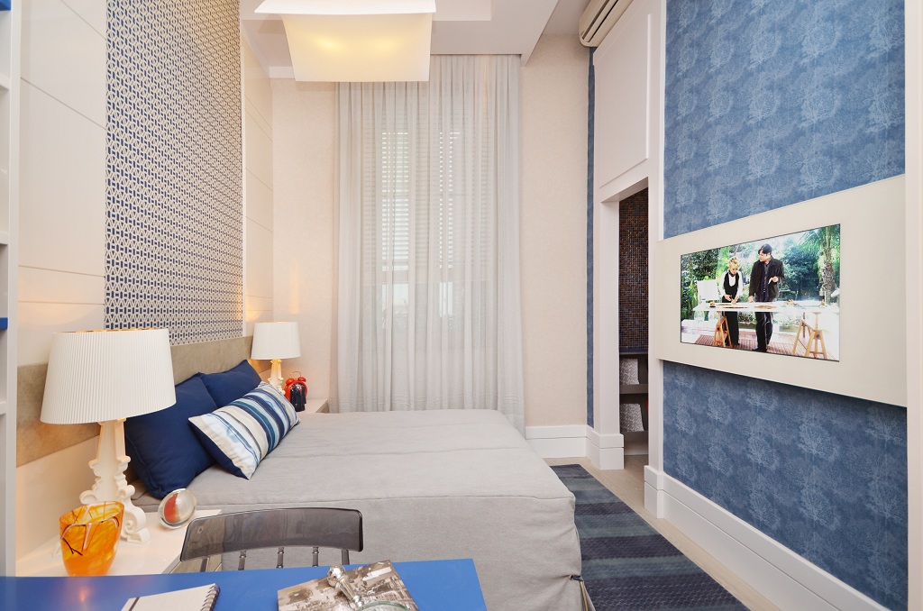 Em sua segunda participação na Casa Cor Rio, o arquiteto Thoni Litsz, assinou o “Estudio do Chef”, em homenagem aos chefs de cozinha, Fábio Batistella, do Meza Bar e do doiZ, e Pedro de Artagão, do Irajá. O ambiente reúne espaço gourmet, quarto e home office, priorizando as cores azul, cinza e pérola, inspirando-se em um rapaz solteiro e amante da gastronomia. Entre os revestimentos, todos da Orlean, destaque para o papel de parede da inglesa Harlequin e o papel em 3D, coleção Club, da marca holandesa Eijffinger.