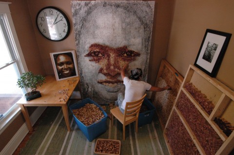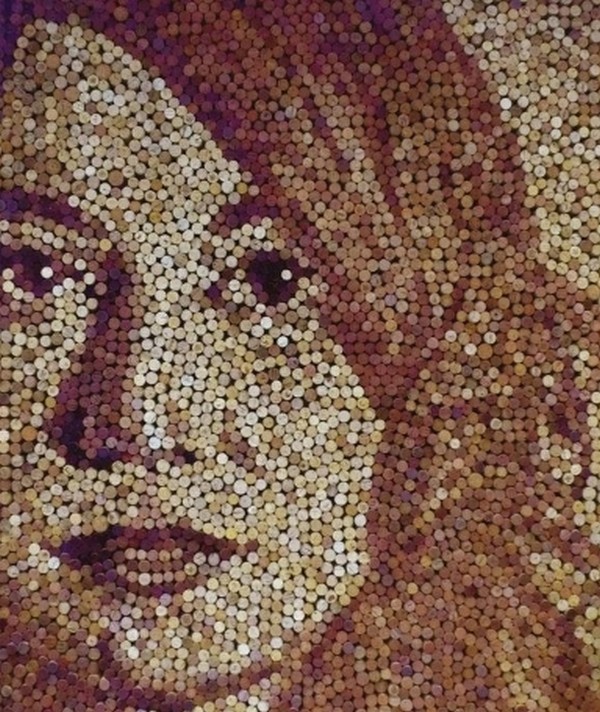 Muita gente reproduz fotos de família em quadros à óleo para eternizá-las, mas que tal fazer um retrato apenas com rolhas de vinho descartadas?
