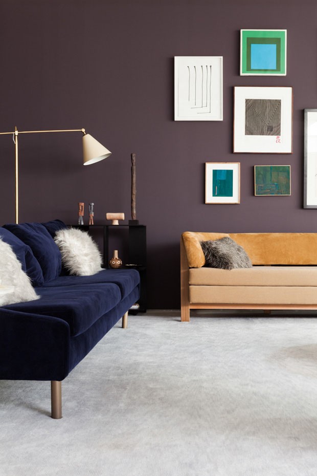 Na Casa Vogue Experience 2016, a sala de estar exibia um tom muito próximo ao roxo criado pela Pantone para homenagear Prince: trata-se do Mala de Viagem, da Suvinil