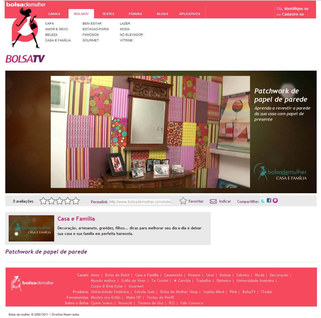 BolsaTVAprenda a revestir a parede da sua casa com papel de presente.Assista o vídeo com essa aula.Veja também as imagens e vídeo do making off. Fonte Navegação de post:AnteriorPost anterior:Francês utiliza telefones antigos para criar obras de artePróximoPróximo post:Vídeo com Making Off do Patchwork no Bolsa de MulherArtigos similaresCasarão centenário no Cosme Velho que hospedou Evita Perón está a venda22/09/2025Casarão centenário no Cosme Velho que hospedou Evita Perón está a venda por R$ 4,7 milhões após 6 anos de reforma, conheça o local:22/09/2025Reforma do Solar de Laranjeiras em canal russo18/09/2025Revista Informare18/09/2025Projeto do Arquiteto Thoni Litsz é destaque na Revista Lush18/09/2025Saiba como montar um home office funcional e confortável11/06/2025