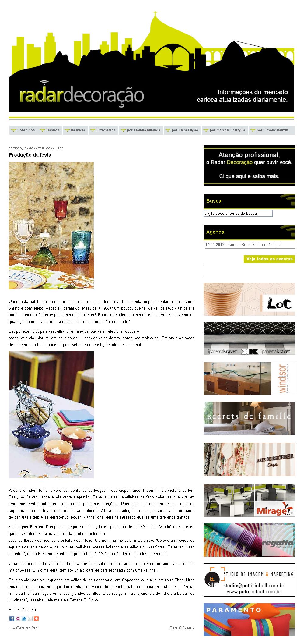 Navegação de post:AnteriorPost anterior:Pequenos jardins transformam banheiros em espaços de descansoPróximoPróximo post:Casa Cor Rio 2011Artigos similaresCasarão centenário no Cosme Velho que hospedou Evita Perón está a venda22/09/2025Casarão centenário no Cosme Velho que hospedou Evita Perón está a venda por R$ 4,7 milhões após 6 anos de reforma, conheça o local:22/09/2025Reforma do Solar de Laranjeiras em canal russo18/09/2025Revista Informare18/09/2025Projeto do Arquiteto Thoni Litsz é destaque na Revista Lush18/09/2025Saiba como montar um home office funcional e confortável11/06/2025