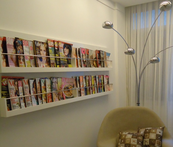 Nesta pequena sala destinada a leitura da empresaria de beleza da marca Widi Care cuja necessidade de revistas são enormes e praticamente o fluxo mensal muda de acordo com as novas que são lançadas nas bancas.
