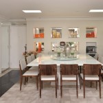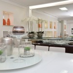 O restante do mobiliário foi aproveitado, o papel de paredes também continuou intacto, junto do piso e da iluminação que foi apenas relocada para atender ao novo jantar.