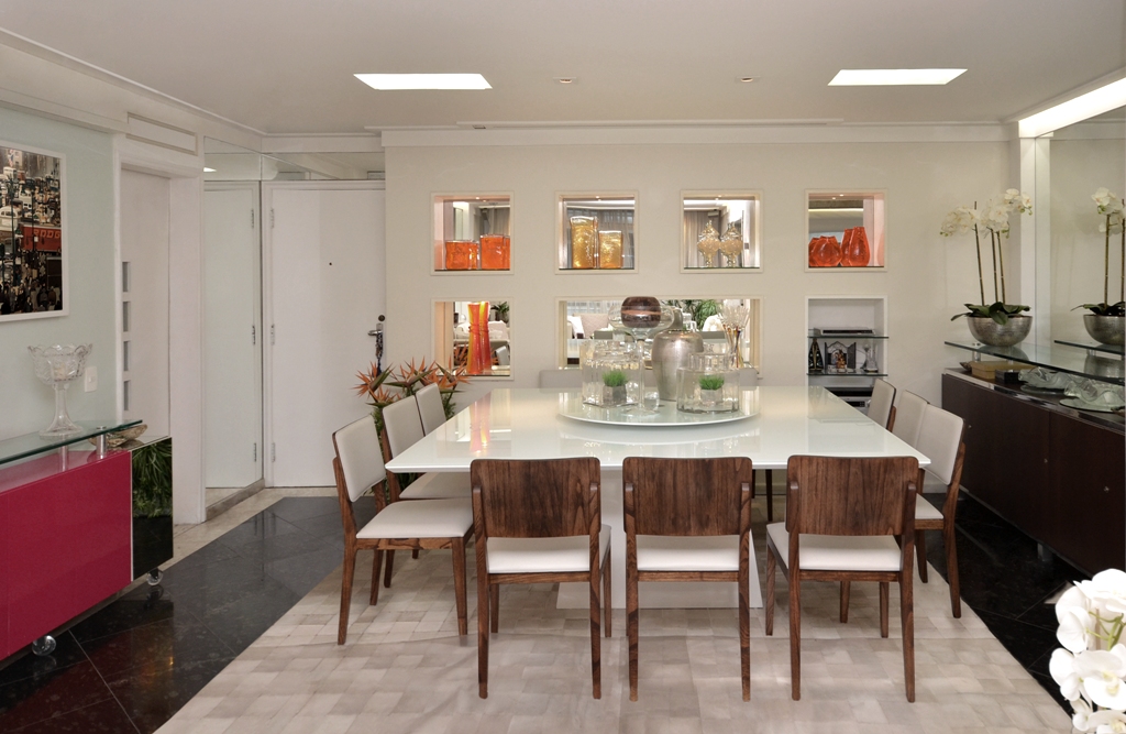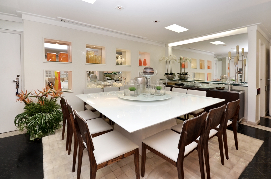 Mas em 2012 tudo isto mudou e a necessidade da cliente também mudou e estes amigos acabaram aumentando junto com a família do casal que tinha dois filhos que se casaram e com isto a família aumentou. E o que inicialmente era uma mesa de oito lugares passou para doze lugares para atender as novas necessidades da cliente.