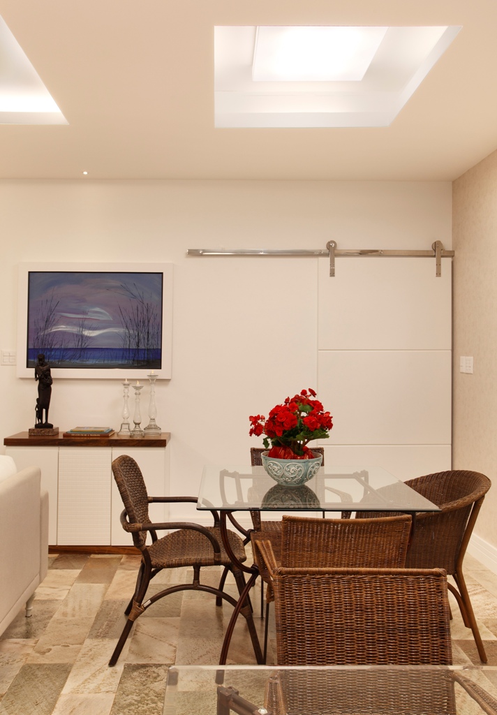 Por isto moveis laqueados foram confeccionados para o espaço e normalmente conjugando madeira maciça com vime e as fibras naturais.