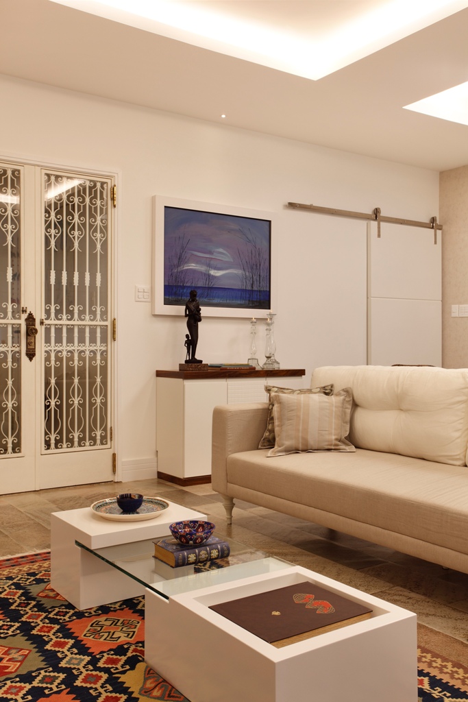 O tapete era uma das peças que a cliente já tinha e parece que foi comprado exatamente para a nova sala.