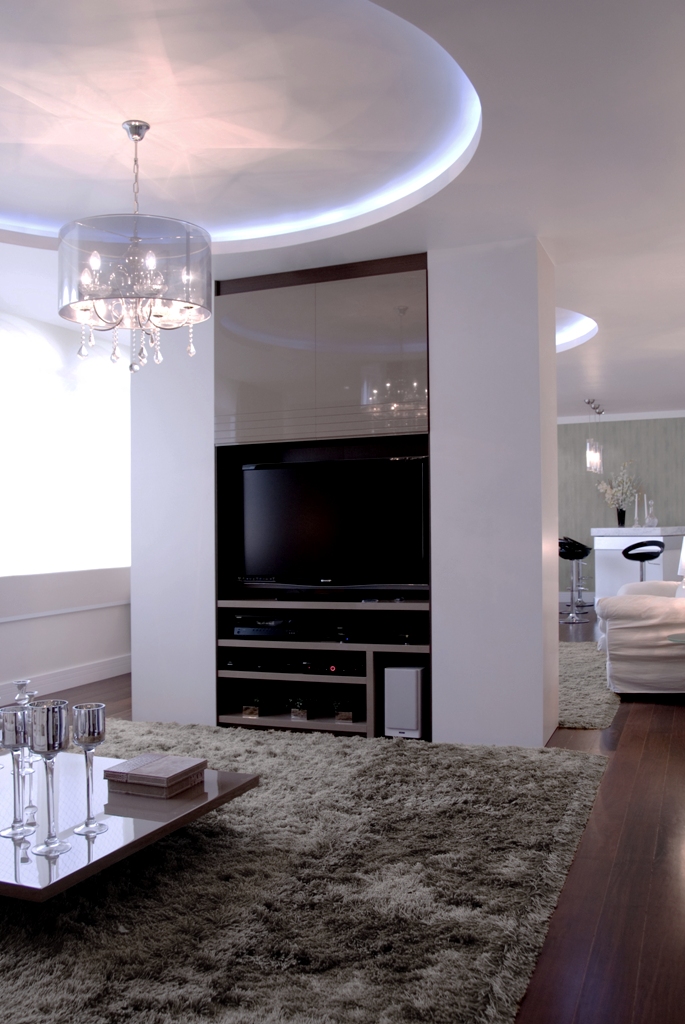“Neste cliente a atenção foi de criar espaços distintos para abrigar atividades diferenciadas para uma família que adora receber amigos. O teto foi o ponto de união dos dois espaços, com círculos centralizados por pendentes também circulares e com um leve toque de sofisticação e ao mesmo tempo modernidade”, relata Litsz.