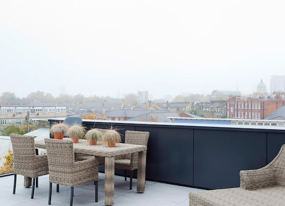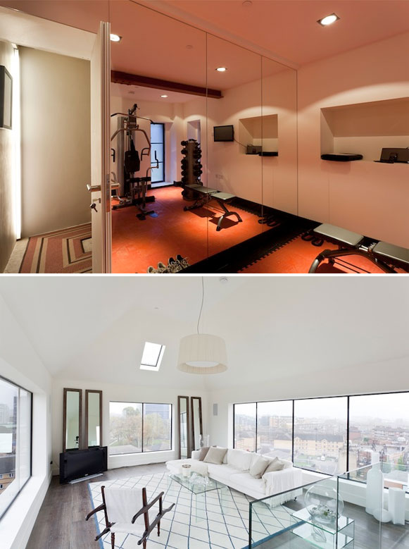A casa consiste em quatro quartos, salas amplas, sala de ginástica, banheiros e um maravilhoso terraço com uma vista de 360º da cidade de Londres.